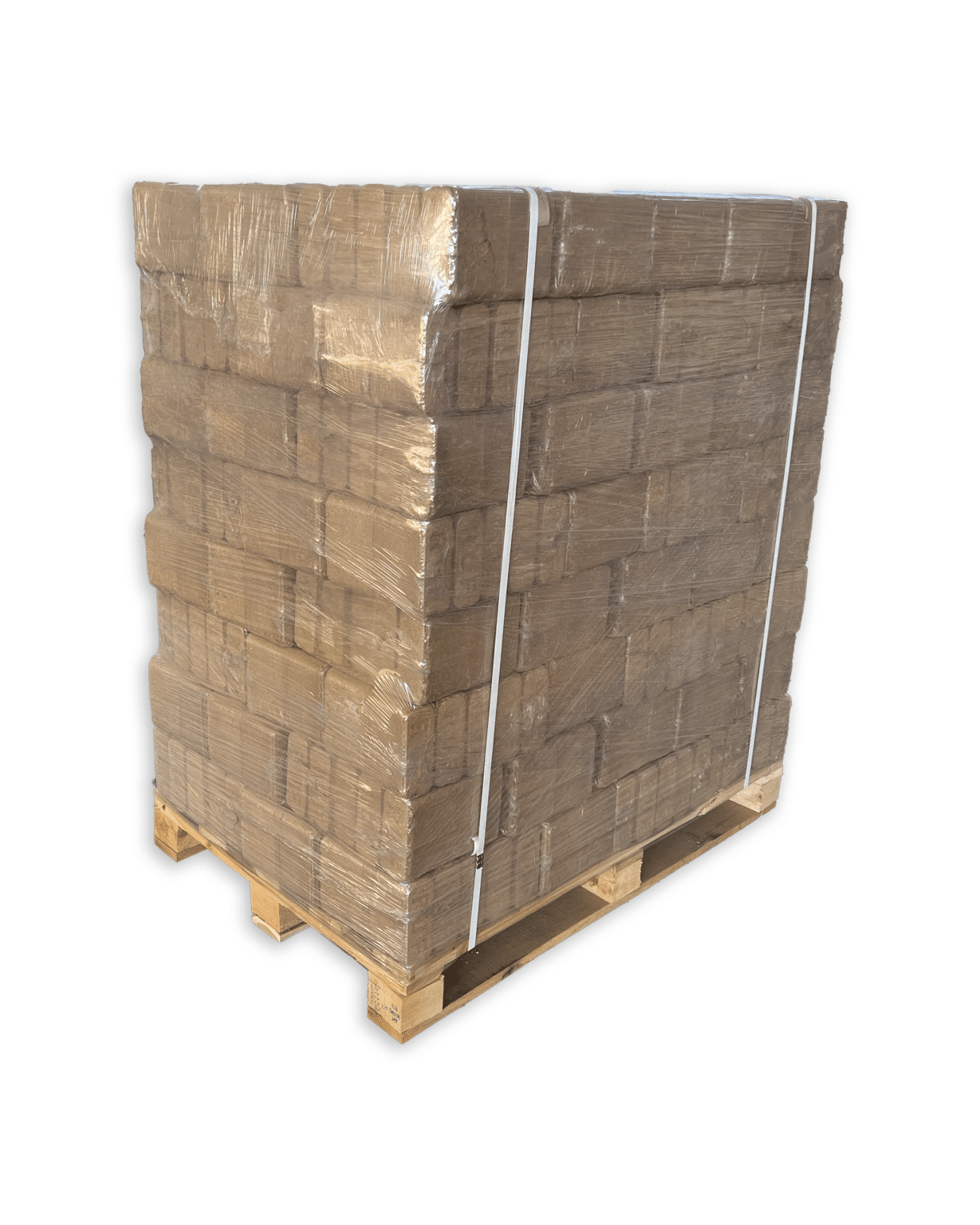 Kaina nurodyta už vieną paletę. Paletėje 96 pakuotės briketų, kiekviena pakuotė sveria 10 kg + / – 5%.