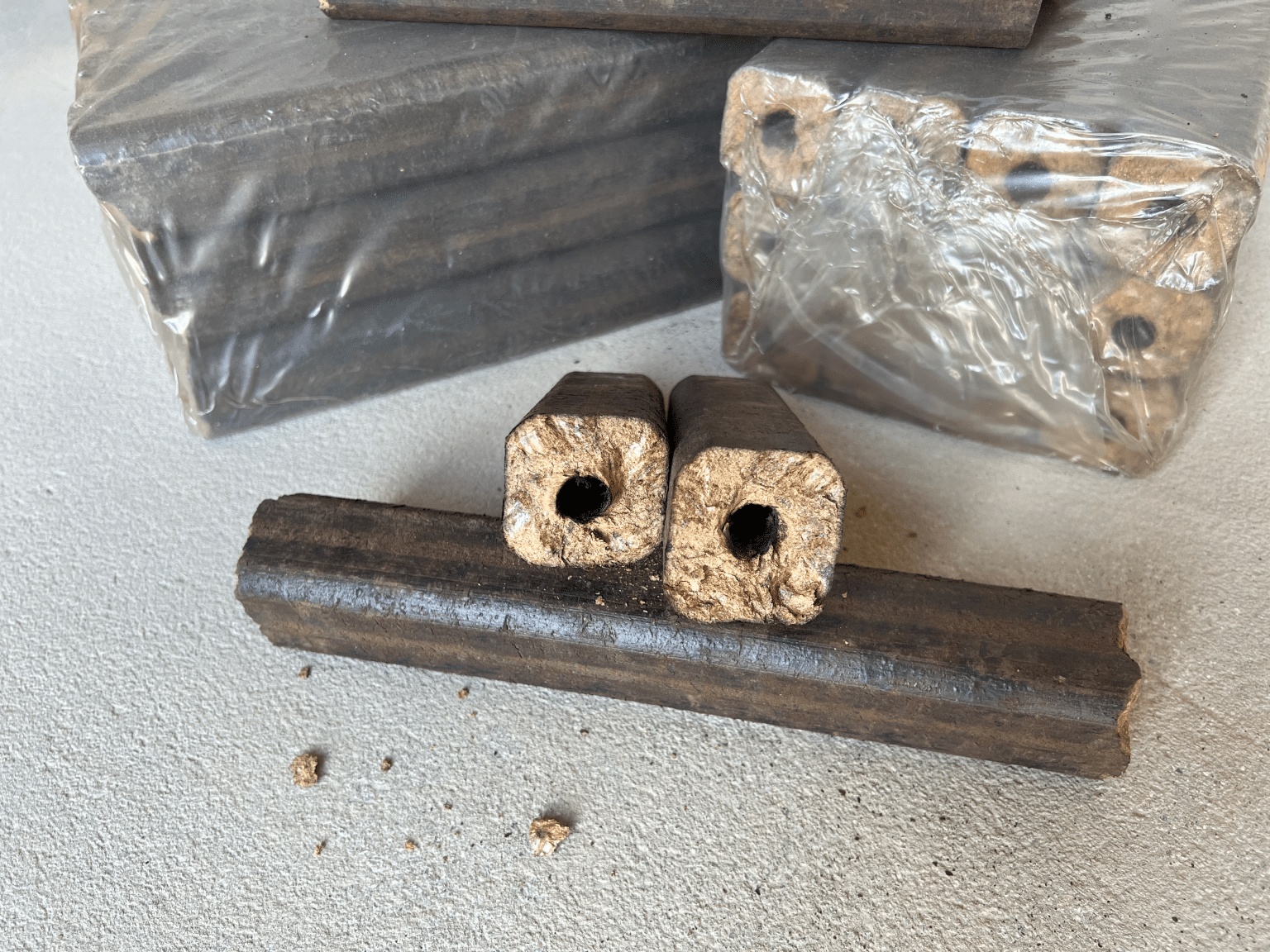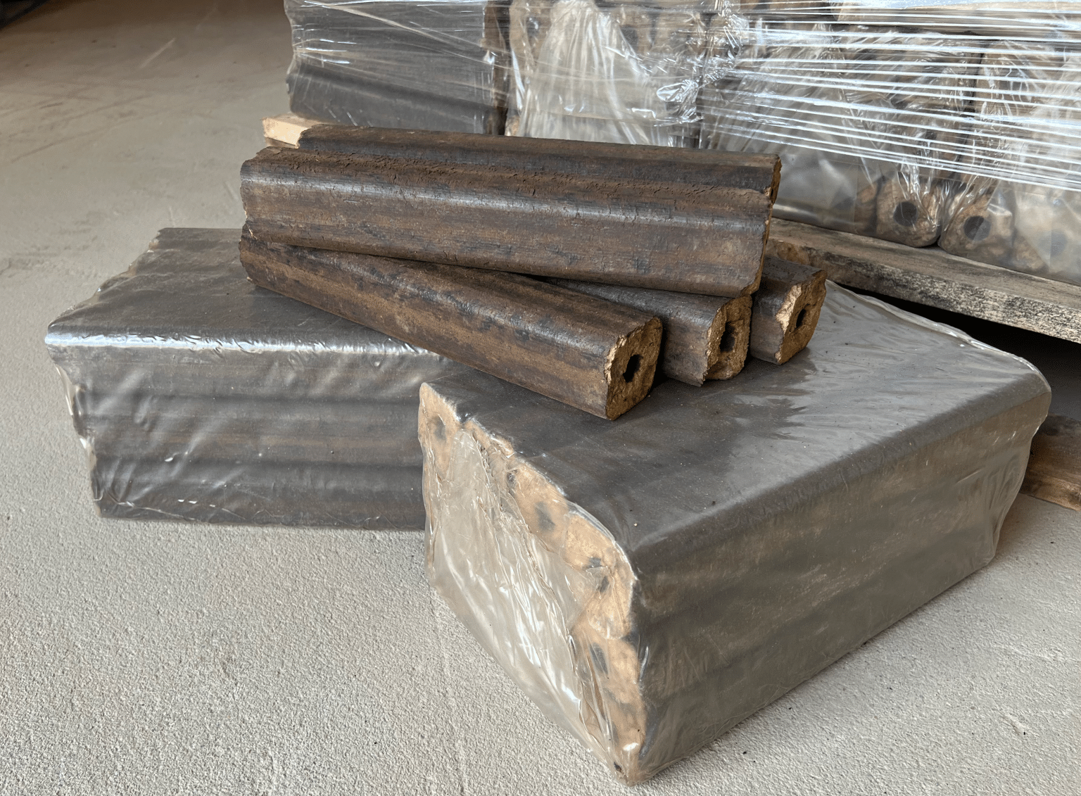 Aukščiausios kokybės Pini Kay briketai, pagaminti 100% iš švarių ir natūralių ąžuolo pjuvenų, be jokių priemaišų ar chemikalų.